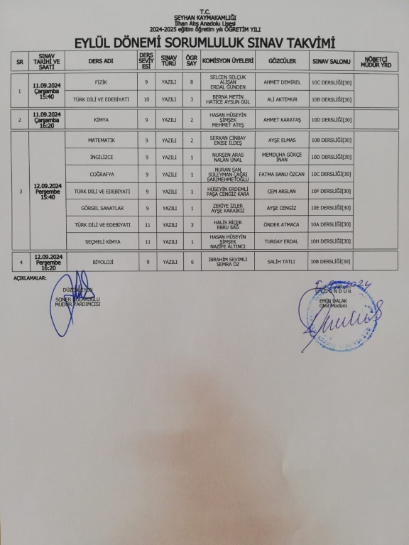 2024 EYLÜL SORUMLULUK SINAV TAKVİMİ